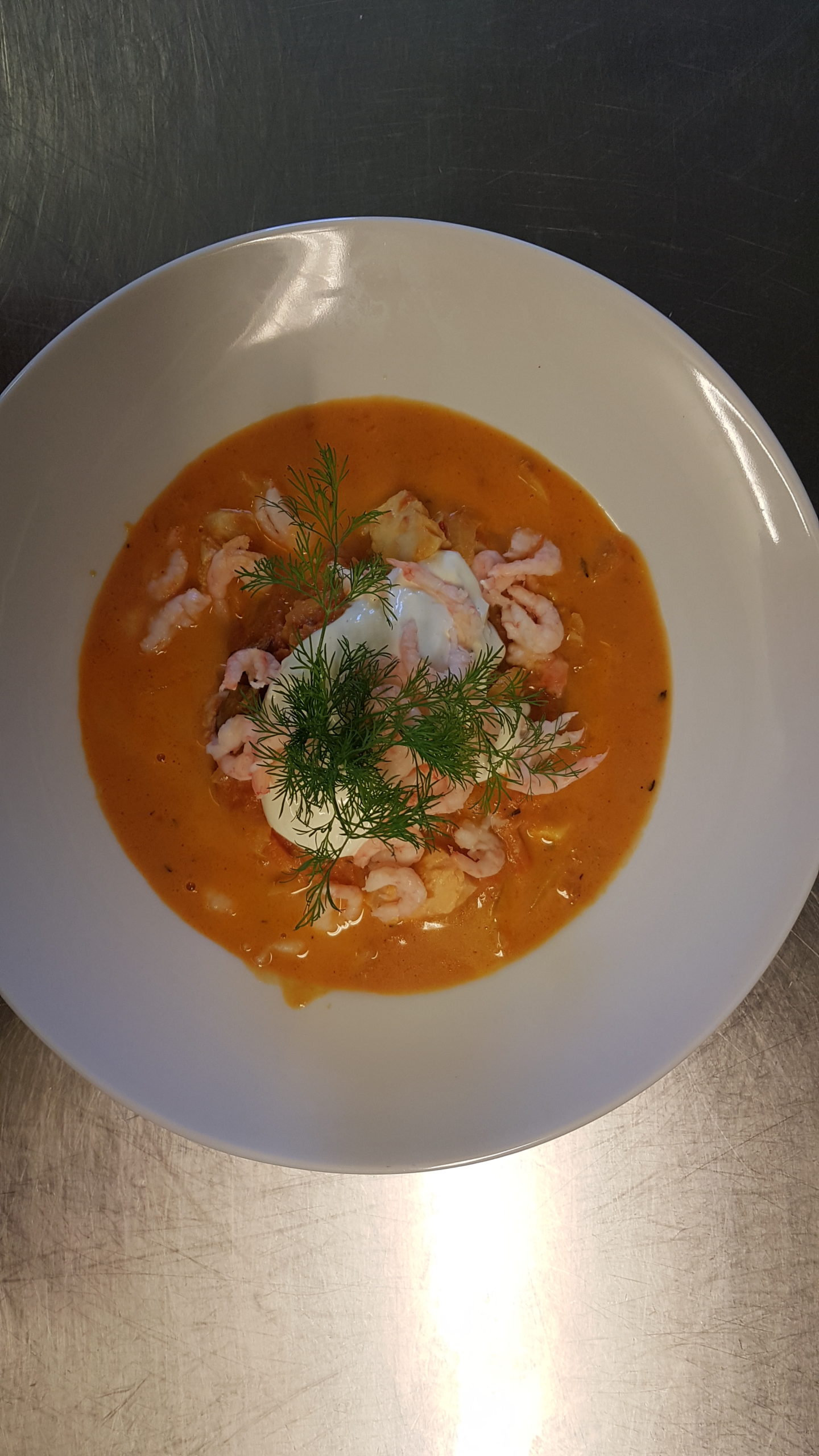 Stekt Skagenfylld laxfile´med vitvinssås och dillkokt potatis 215:_